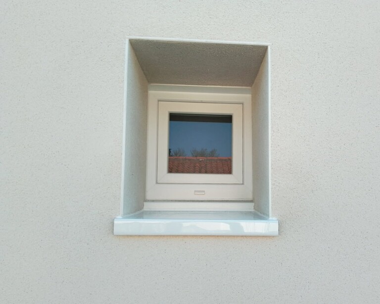 - Baguette d’angle de V : Cette baguette est installée sur les coins du bâtiment pour protéger les arêtes et assurer un angle net et précis. Elle offre également une protection supplémentaire contre les impacts et les intempéries.