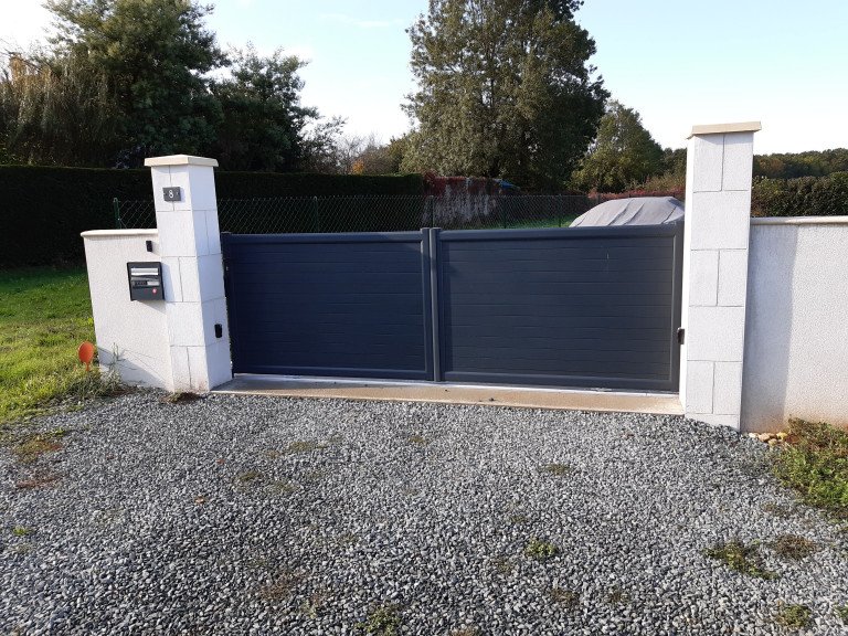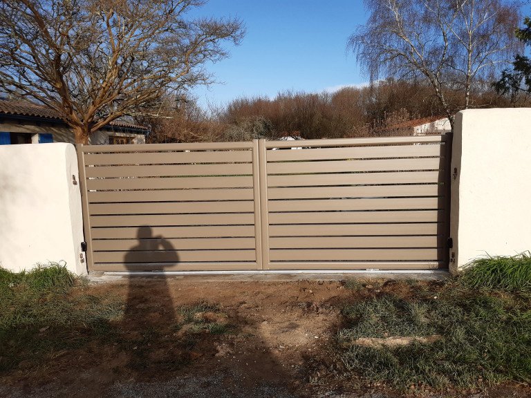 Le cadre du portail est en alu soudé thermolaqué pour une meilleure résistance aux intempéries.